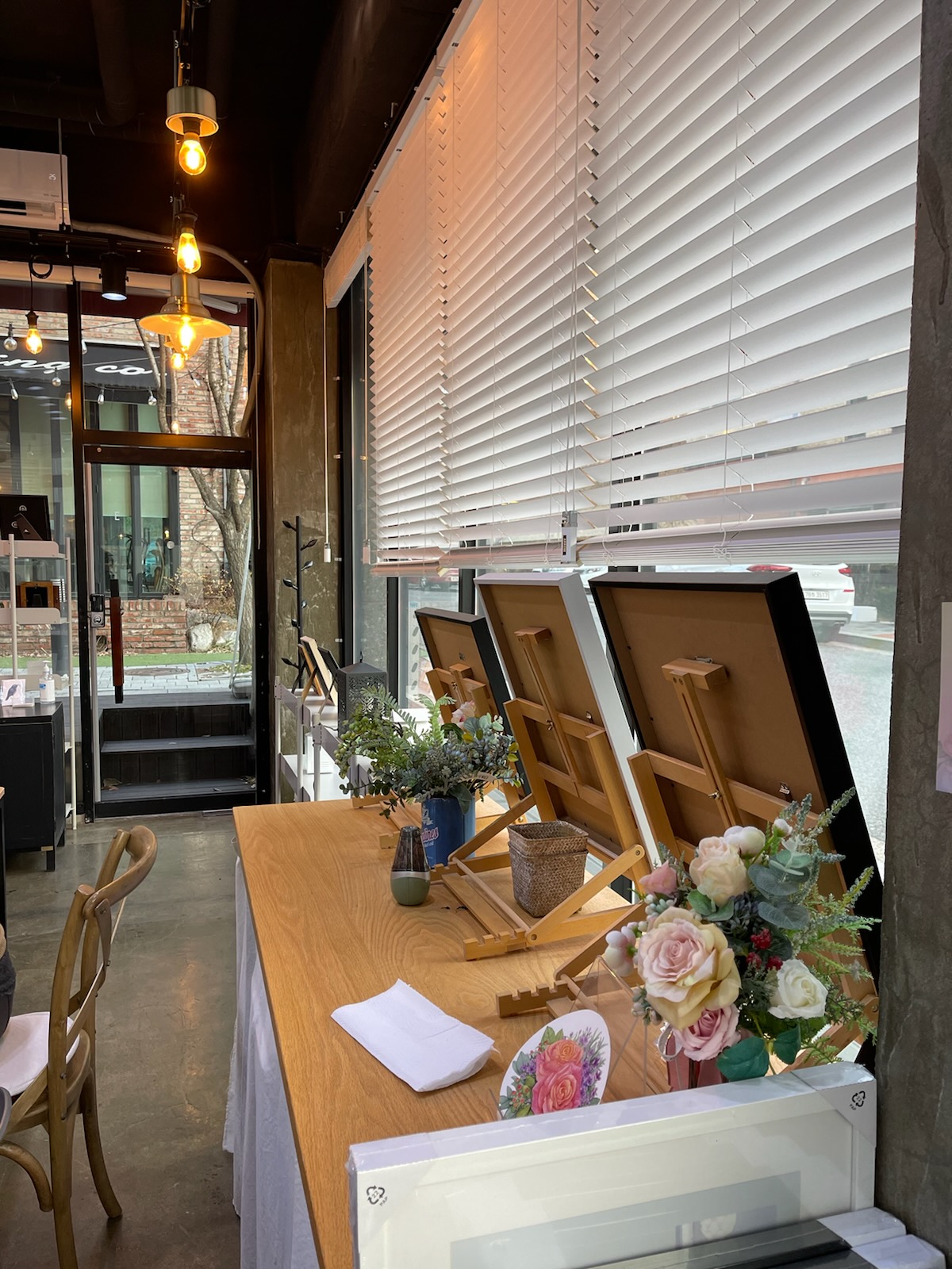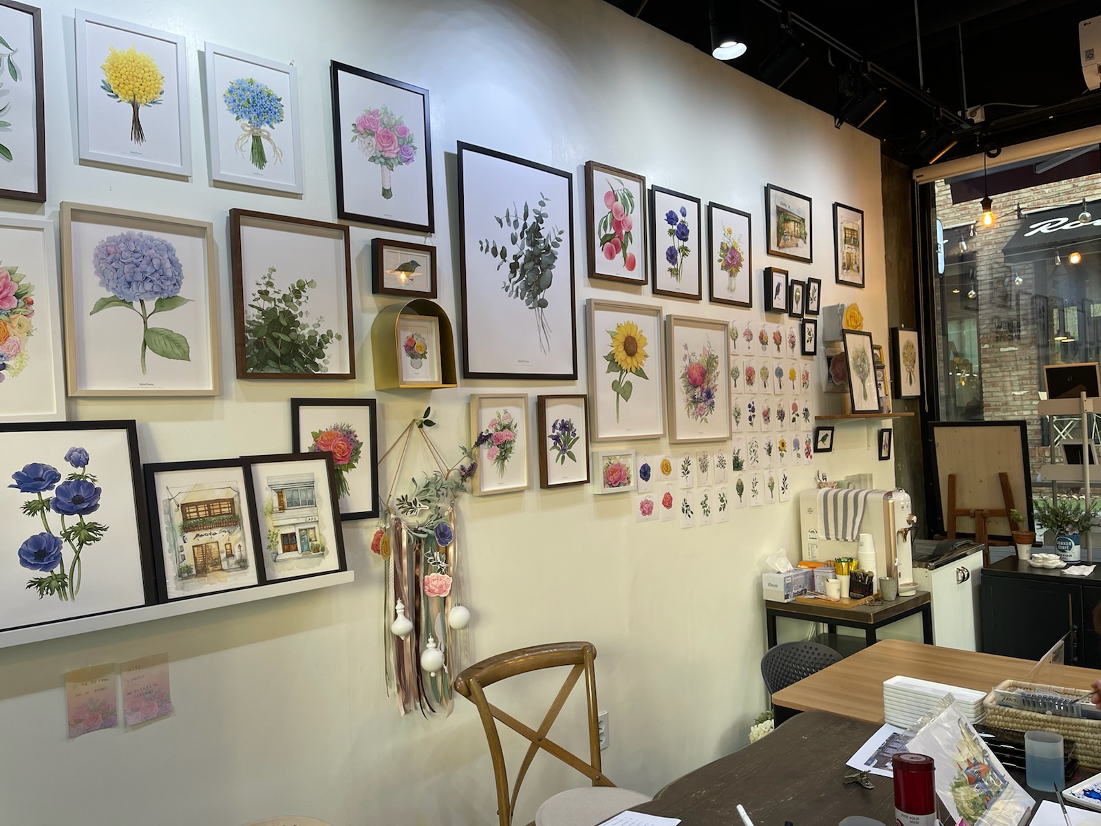 Cozily encased in the beginning part of Gwanggyo Lake Cafe Street and near the Sang-hyun Dong Catholic Church at Sang-hyeon Dong, in Yong-in, a small yet intriguing watercolour studio called Bellepioom has been open for around 3 years. Out of the three years nearly two were spent defending the studio in COVID-19 attacks. With one pupil working fervently at the long table inside, I talked with the owner and tutor for fifteen minutes about the kind of artwork she does and wants to engage in at the place.